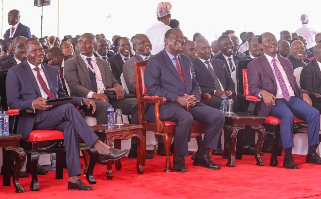 PCS Musalia Mudavadi flanked by Uasin Gishu governor Jonathan Bii and ICT CS William Kabogo